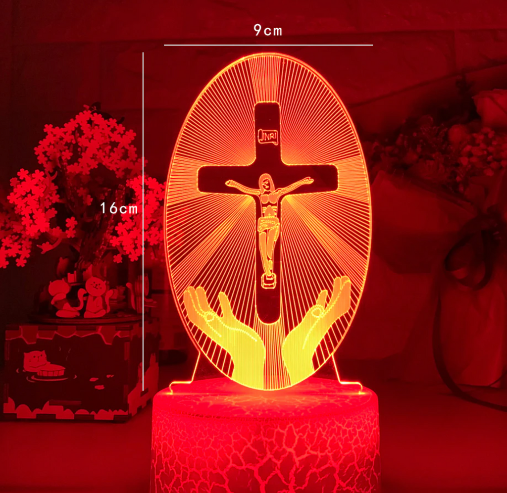 A Cruz de Cristo é uma luminária de LED com 7 cores e detalhes únicos.