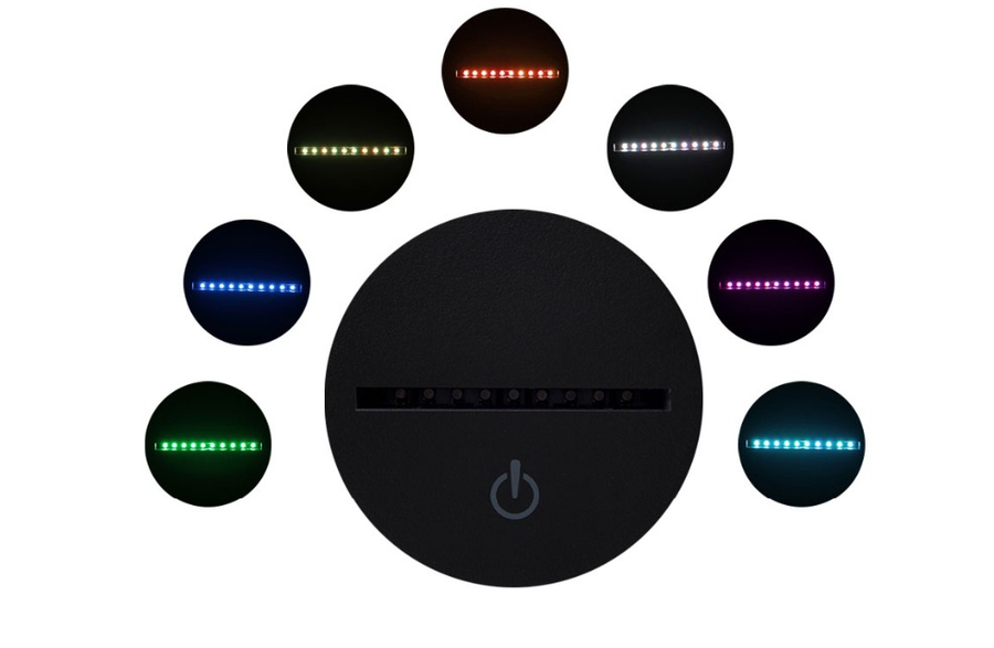 Você pode deixar uma cor fixa ou habilitar a mudança automática das cores, apertando o botão por 8 vezes.